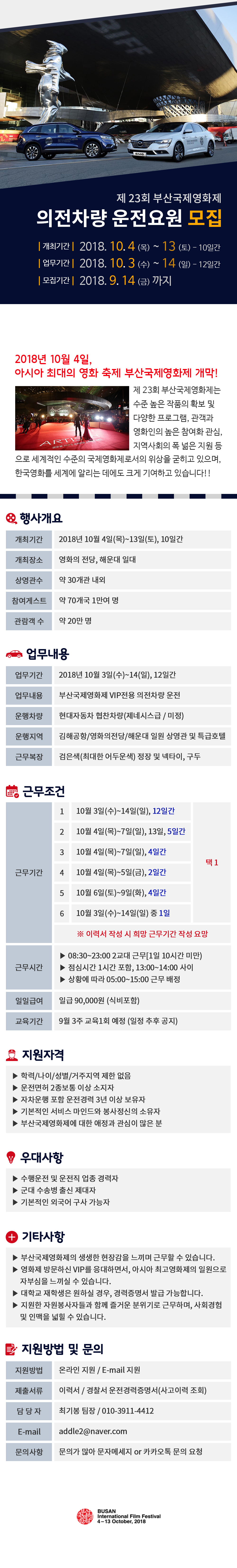 제23회 부산국제영화제 의전차량 운전요원 모집 공고