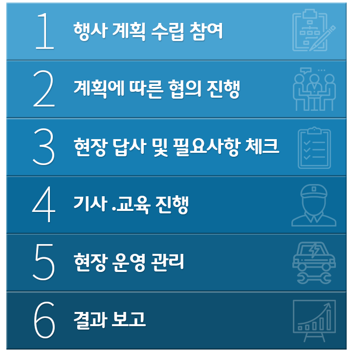 국제회의 / 전시 / 컨벤션 행사에 수송 및 의전차량 서비스를 제공합니다.